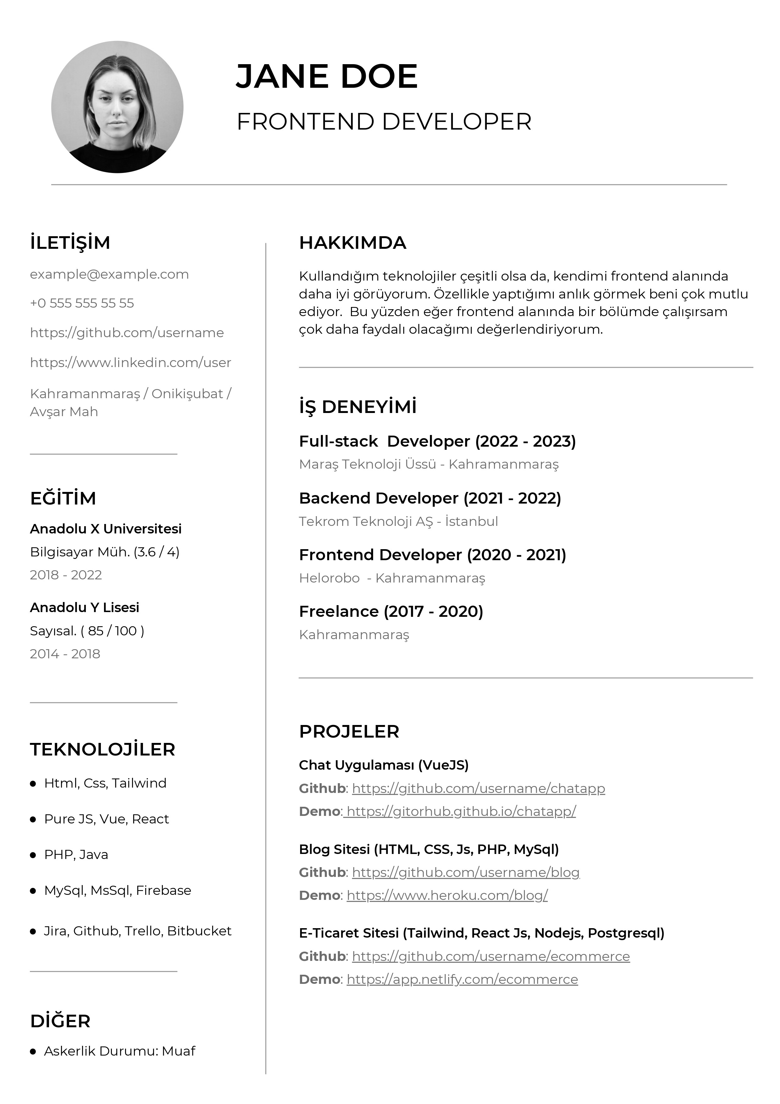Özgeçmiş Örneği